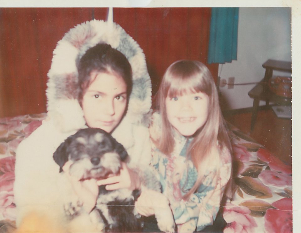 Where in the world was that picture taken? The bedspread and that old step table are slightly familiar, but the closet doors? They look too light. And who is the puppy–was that Friskie? We had so many, I really lost track of who was when. We were all a whole lot younger, though! And you have a most mysterious countenance!
