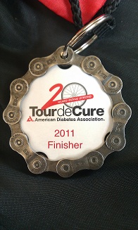 It was around mile number forty-two when I suddenly realized that what I was doing felt more like work than fun. The terrain hadn’t really changed—it was mostly flat with occasional hills into and out of river valleys. I was just getting fatigued. By mile forty-three my neck decided it was tired of holding up my head and started complaining. Loudly. Shortly after that I met Colleen, a woman not very much older than I am, who was wearing the distinctive red jersey that signified she was a diabetic. She had the slim strong build that many avid cyclists have and told me that her diabetes was diagnosed forty years ago. Forty years of finger pricks for blood tests and insulin injections. She had obviously taken good care of herself. The next rest stop on the ride, I eschewed the bananas and granola bars for a chance to lay down on the grass and stretch.